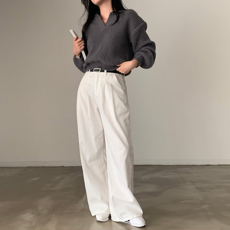 Women's V-neck Lapel Long-sleeved Sweater Slim Fit Slimming Sweater